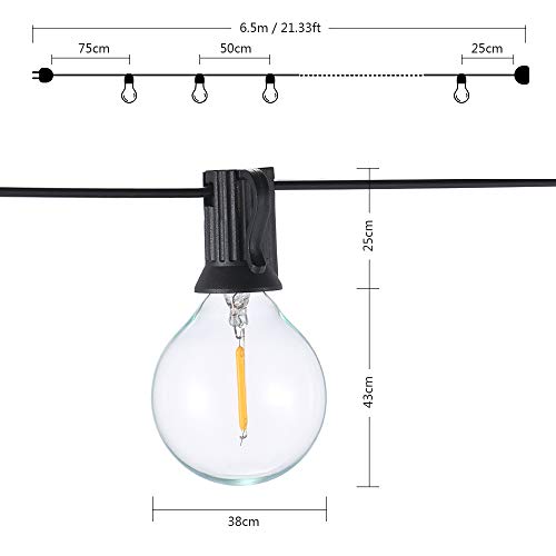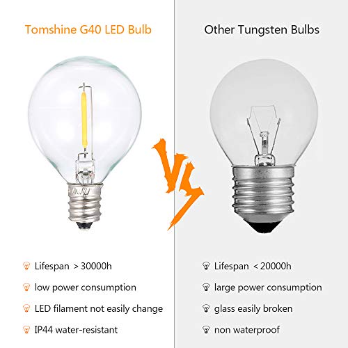 Tomshine G40 - Catena luminosa a LED per esterni, 6,5 m, 12 lampadine con 1 lampadina di ricambio, per matrimoni in Xmas/feste, impermeabilità IP44 [classe energetica A+]