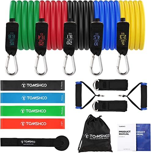 TOMSHOO 17Pcs Bande Elastiche Fitness con Borsa di Trasporto Ancoraggio Cinghie della Caviglia Maniglie Ammortizzate per Casa Palestra Viaggio