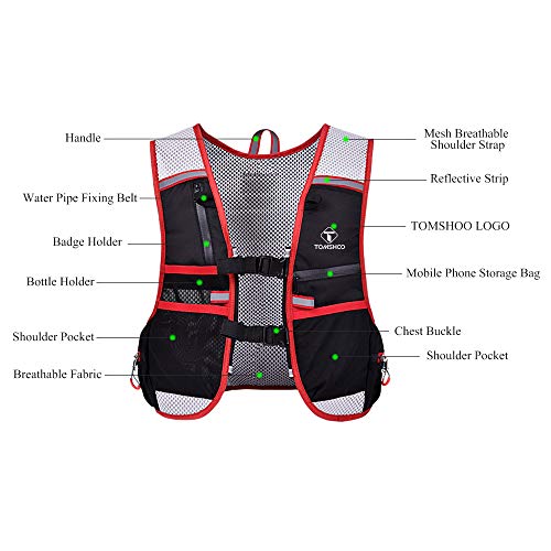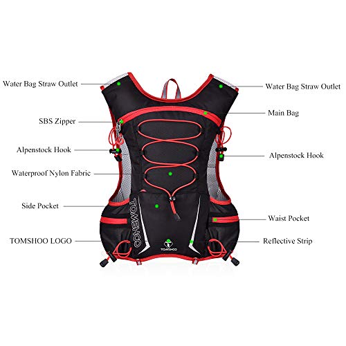 TOMSHOO 5L Gilet da Corsa, Zaino da Corsa con Sacco Isolante, Fischietto, Coperta Termica per All'aperto Corsa Escursionismo Ciclismo