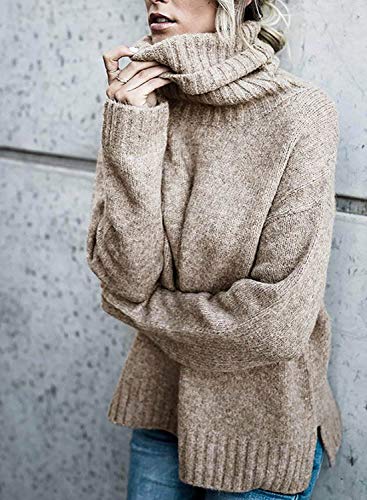 Tomwell Donne Maglione Maglia Alta Colletto Collare Allentato Maglioni Inverno Lungo Chunky Knit Cachi IT 46