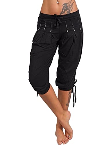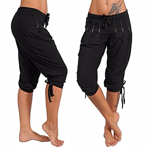 Tomwell Pantaloni Sportiv Estivi 3/4 Lunghezza Donna Corto con Elastico in Vita Pantaloni Capri Pantaloni al Ginocchio con Tasche Causal Matita Pantaloni da Jogging Yoga W Nero 3XL