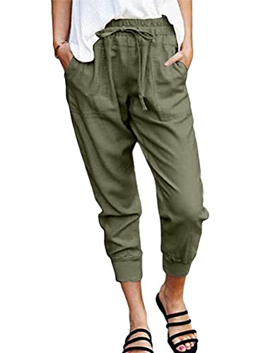 Tomwell Pantaloni Sportivi da Donna Pantaloni Tuta Donna Corti di Vita Alta Pantaloni Estivi Casual Pantaloni al Ginocchio Donna Elasticizzati con Coulisse da Palestra Jogging X Army Green XS