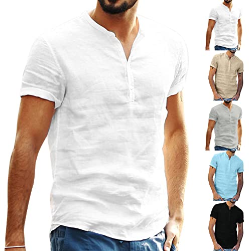 Tomwell Uomo Camicia in Lino Manica Lunga Henley Shirt con Bottoni Casual in Tinta Unita Maglietta T-Shirt da Uomo per Interni Spiaggia Hippie B Grigio XS