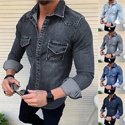 Tomwell Uomo Denim Camicia Sottile Manica Corta Cotone Due Tasche Slim Leggero Elastico Jeans Cowboy Camicia Nero L