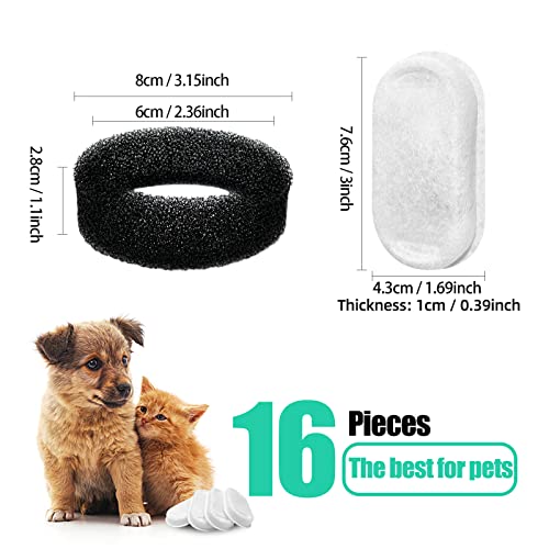 TOMXCUTE Filtri Fontanella per Gatti, incluso 8 pezzi di filtro a carbone e 8 pezzi di spugna in schiuma