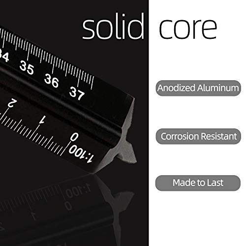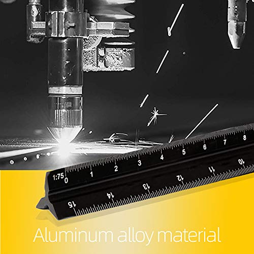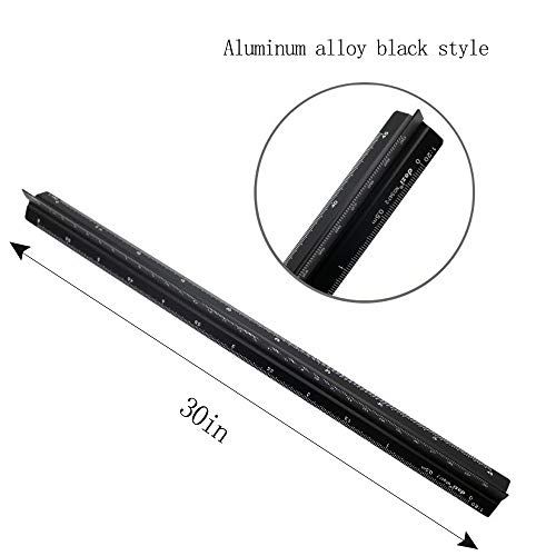 TONAUP Righello Triangolare, 30cm Scalimetro Alluminio Nero, Righelli Scala Ideale per Architetti e Ingegneri 1:20, 1:25, 1:50, 1:75, 1:100, 1:125