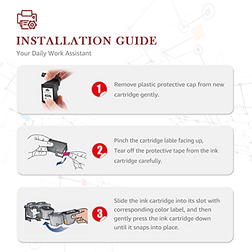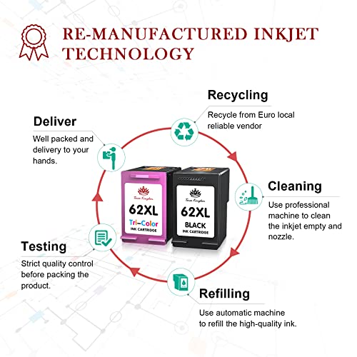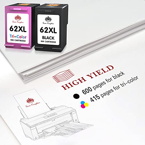 Modello di cartuccia: Toner Kingdom cartucce d'inchiostro 62XL compatibile per cartucce HP 62 nero e colore cartuccia HP 62 nero HP 62XL cartucce 62 HP (Non originale HP).