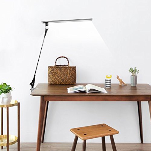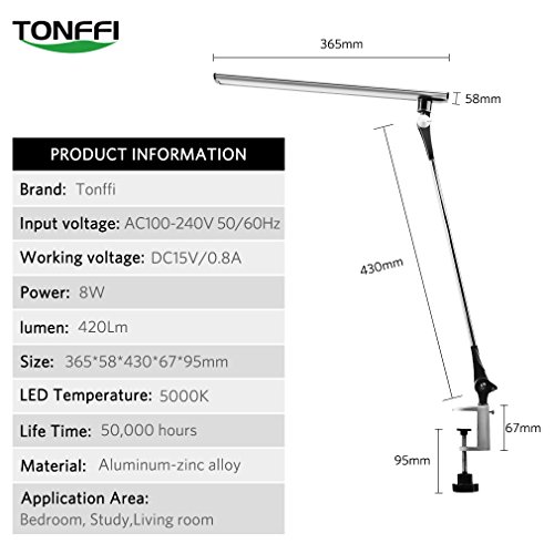 Tonffi LED lampada con morsetto 8W tavolo dimmerabile lampada da lavoro anti-riflesso 5 Livelli di Luminosità in alluminio protezione degli occhi 420lm Argento