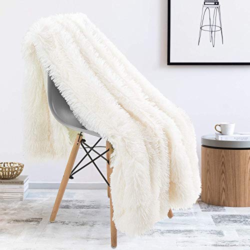 Tongfushop Lana Coperte, Pelosa Coperta PV Capelli in Pelliccia Sintetica Super Morbida, Plaid in Pile Bifacciali Possono Essere Utilizzate per Divani, Camere da Letto (bianco, 160 x 200cm)
