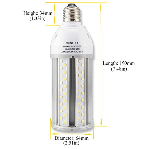 Tongsung Lampada LED, bianco caldo (3000 K) con ampio range di tensione di ingresso AC 85 V - 265 V, molto luminosa, struttura in lega di alluminio e protezione dalla polvere (grado di protezione: IP64) Attacco E27 Cap., E27, 20.00 wattsW, 265.0 voltsV