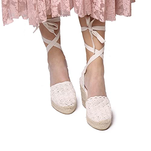 Toni Pons Espadrillas da Donna in Cotone all'Uncinetto - Martina - Crudo, 41 EU