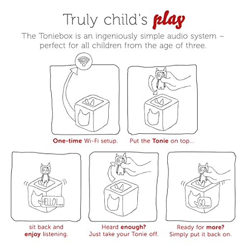 Facile da usare: posiziona uno qualsiasi dei caratteri audio tonies sopra il lettore musicale Toniebox per bambini e lascia che il divertimento abbia inizio. Toglietelo e si ferma. È così facile da usare, anche i bambini possono farlo funzionare