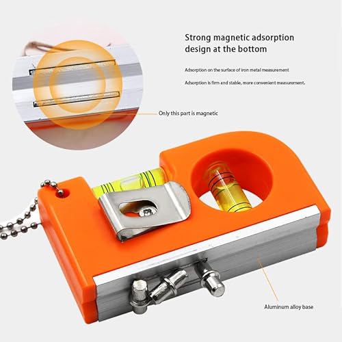 [Facile da trasportare e conservare] La livella a bolla magnetica dotata di una clip di fissaggio in metallo e una catena in metallo, facile da trasportare e riporre. Si può mettere in qualsiasi borsa, appendere a una cintura o un anello portachiavi e utilizzarlo comodamente.