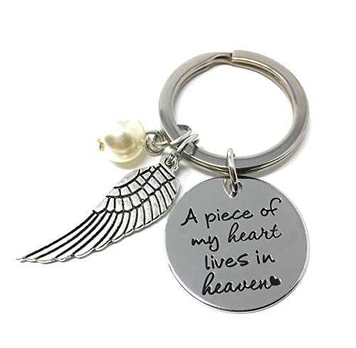 Tono argento 'Un Pezzo Di Mio Cuore Vive In Paradiso' Inciso Pendente Portachiavi 2,2 cm Diametro Perdita