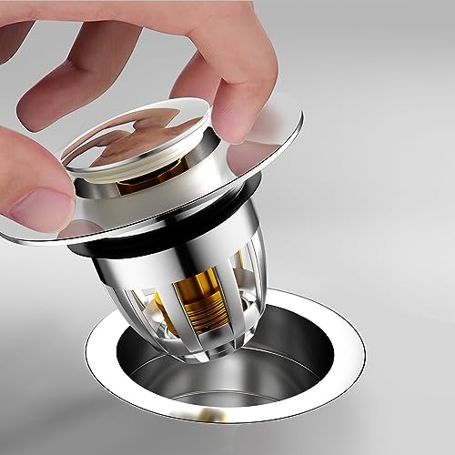 【Filtro anti intasamento】Il nuovo tappo di scarico del lavabo ha un filtro a cestello integrato che cattura capelli, sporco e gioielli caduti accidentalmente per prevenire l'intasamento dello scarico, ottenendo un filtraggio efficace a differenza del normale sistema di scarico a pulsante. Efficace Evita l'intasamento delle fogne, si tratta di un tappo per lavabo rimovibile e lavabile, può essere pulito semplicemente rimuovendo le parti
