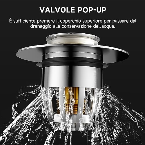 TONOMO Tappo Lavandino Bagno,Filtro Tappo per lavello con Filtro Anti Clogging,Tappo di scarico in ottone,Scarico Lavabo Bagno Universale Pop Up,apertura foro di scarico 30.2mm,Per Lavandino Bagno