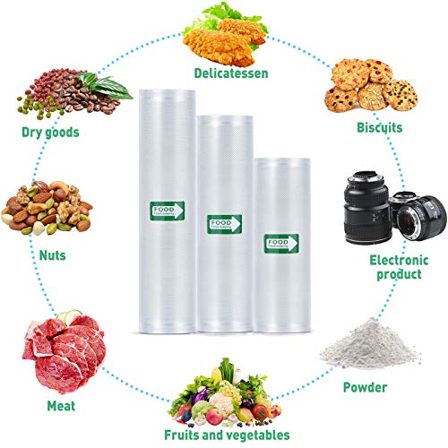 【PRATICO】I sacchetti per sottovuoto con goffratura sulla superficie possono portare un migliore effetto di sottovuoto. Diverse dimensioni per soddisfare le diverse esigenze: 28 cm * 500 cm / 25 * 500 cm / 20 * 500 cm. Adatto a tutti i tipi di Macchina Sottovuoto per Alimenti.