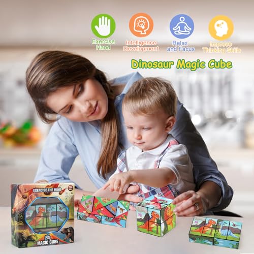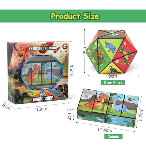 TonStyle Cubo Magico, Magic 3D Puzzle Cubes, Cubo Infinito, Trasformabili Cubo Giocattoli, Cubo Infinito Antistress, Gioco Educativo Decompressione Giocattolo per Bambin (Dinosauro)