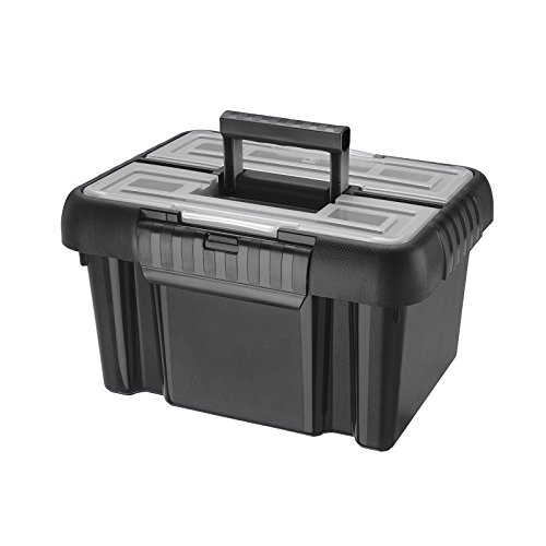 Tontarelli TON219 Cassetta Porta Attrezzi Utile Box Media con Coperchio e Maniglia, 10L, Colore Nero Grafite