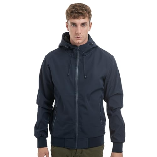 TONY BACKER Giacca Jacket Uomo Invernale Softshell Impermeabile Antivento con Cappuccio Giacca Calda Giubbotto Uomo Trekking Casual (L, Blu)