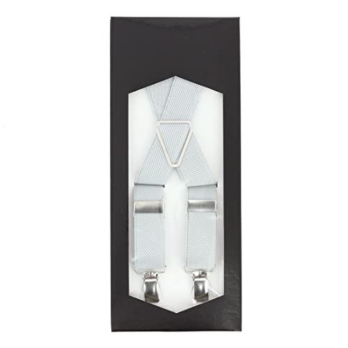 Larghezza spallacci: 2,5 cm. Pinze in acciaio.. Ideale per matrimoni. Disponibili in 3 misure: 60 cm (da 4 mesi a 5 anni), 75 cm (da 6 a 9 anni) e 95 cm (da 10 a 14 anni). Bretelle con 4 pinze. La dimensione si misura da una delle pinze anteriori fino alla pinza posteriore. triangolo in acciaio sulla parte posteriore alla giunzione delle 4 fasce elastiche