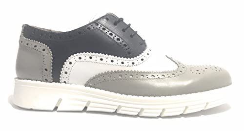 TONY WILD Scarpe Uomo Francesina Brogue Pelle Bianca Grigio e Blu US17TW14 44