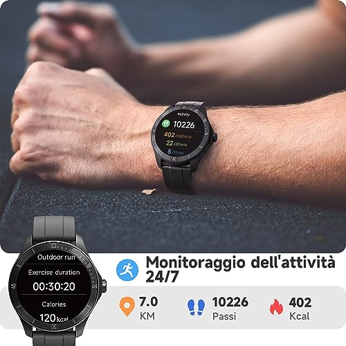 [Attività e FitnessTracker]Lo smartwatch fitness può monitorare in tempo reale la tua frequenza cardiaca, il livello di ossigeno nel sangue e lo stress e avvisarti se c'è qualcosa di anomalo. Con 100 diverse modalità sportive, il tracker di attività ti consente di monitorare i tuoi passi, le calorie bruciate, la distanza e, con una resistenza all'acqua IP68, l'orologio è perfetto anche per nuotare.