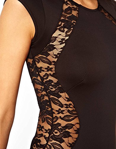Toocool - Abito Vestito Lungo Donna Inserti Pizzo Trasparente Spacco Aderente DL-857 [XXL,Nero]