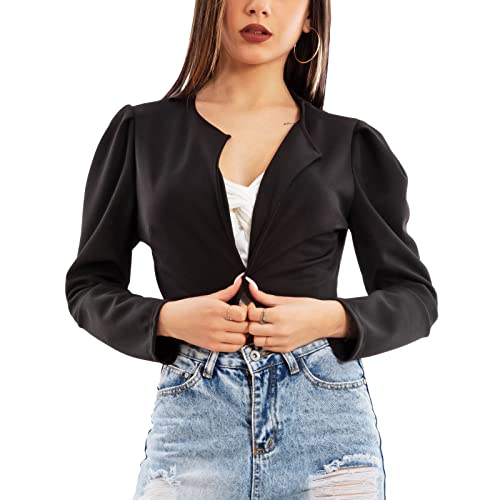 Toocool Giacca Corta Donna Bolero Coprispalle Elegante Maniche Sbuffo VB-2066 [Taglia Unica,Nero]