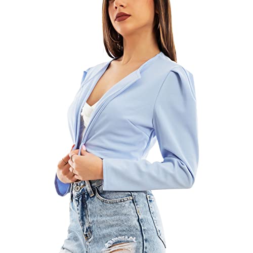 Toocool Giacca Corta Donna Bolero Coprispalle Elegante Maniche Sbuffo VB-2066 [Taglia Unica,Celeste]