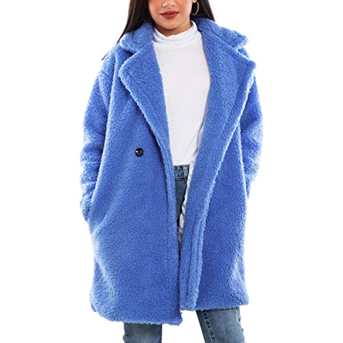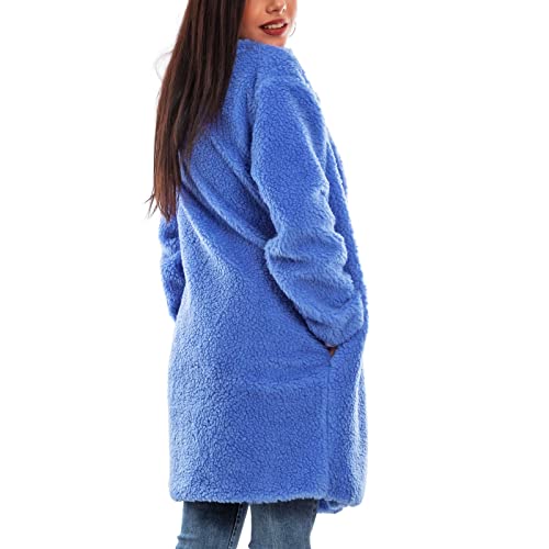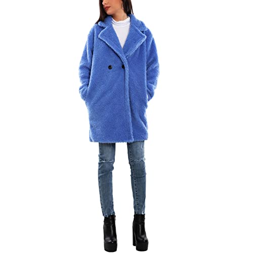 Toocool Giacca Donna Midi Peluche Cappotto Invernale Giaccone Giubbotto VB-3614 [Taglia Unica,Blu Chiaro]