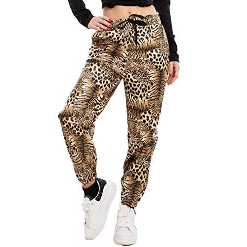 Toocool Pantaloni Donna Ecopelle Effetto Pelle Coulisse Casual Sportivi JL-3035 [Taglia Unica,tigrato ]