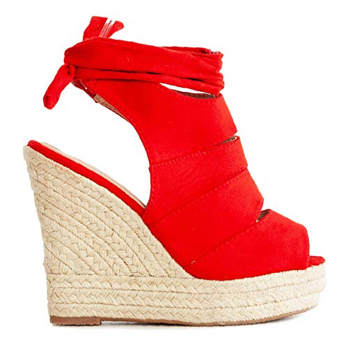 Toocool - Scarpe Donna Sandali Zeppa Cinturino Fondo Corda Espadrillas Lacci 20-18 [37,Rosso]