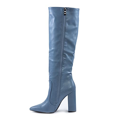 Toocool - Stivali Donna Scarpe a Punta al Ginocchio Tacchi Alti Stivaletti X8056 [37,Blu Avio]