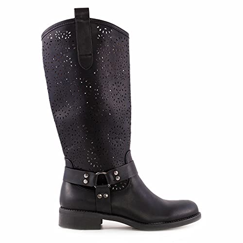 Toocool Stivali Donna Traforati Estivi Scarpe Tacco Comodo Primaverili GR-6601 [37,Nero]