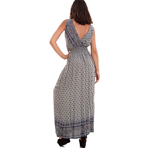 Toocool - Vestito Donna Abito Lungo Leggero Scollo V Cachemire Boho Gipsy Nuovo AS-5734 [Taglia Unica,Verde Militare]
