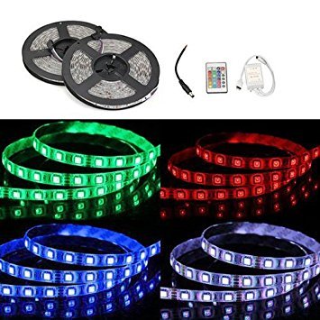 TOOGOO(R) Luce striscia RGB 600 LED 5050 SMD DC12V 10M 2x5M Impermeabile Flessibile + telecomando 24 tasti