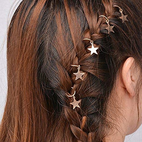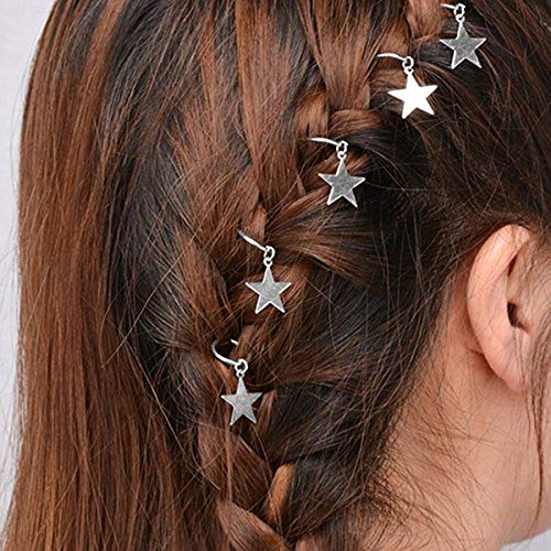 TOOGOO 10 Pezzi Signora Ragazze Cute Argento Lucido E Oro Star Hair Rings Trecce Clip Di Capelli Metallo Polsini Decorazione Dei Capelli Intrecciare Gioielli (Argento E Oro Stelle)