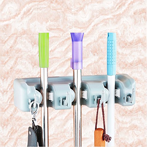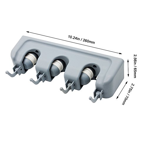 TOOHUI Portascope da Muro,Scopa Supporto da Parete, Scopa Mop Titolare, Portascope e Portaspazzole Muro Montato, per Garage, Cucina da Cantina, 3 Posti e 4 Ganci