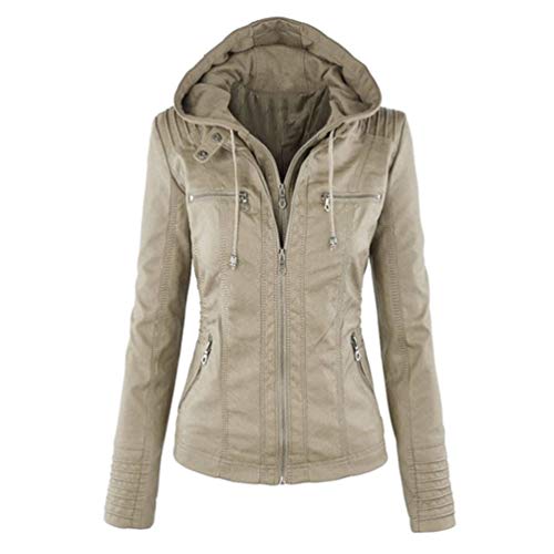 Tookang Donna Moda Giacchetto Finta Pelle Ecopelle Giacca da Motociclista Giubbino con Cappuccio Cappotto a Biker