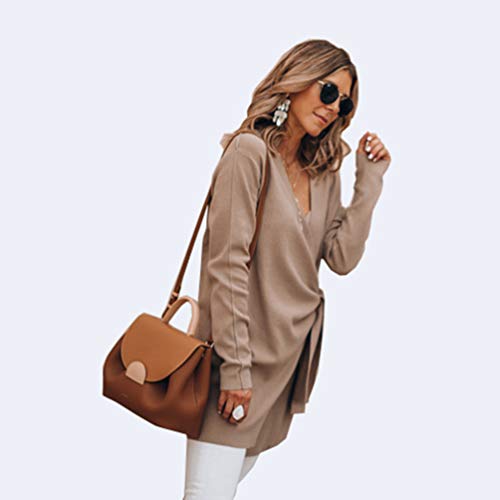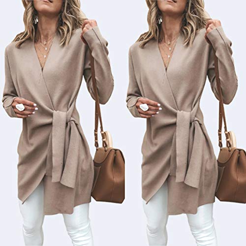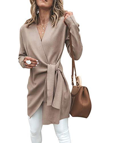 Tookang Donna Tinta Unita Cappotto in Finto Camoscio V-Collo Cintura Lungo Giacca per Il Tempo Libero Cappotto Cardigan A Maniche Lunghe