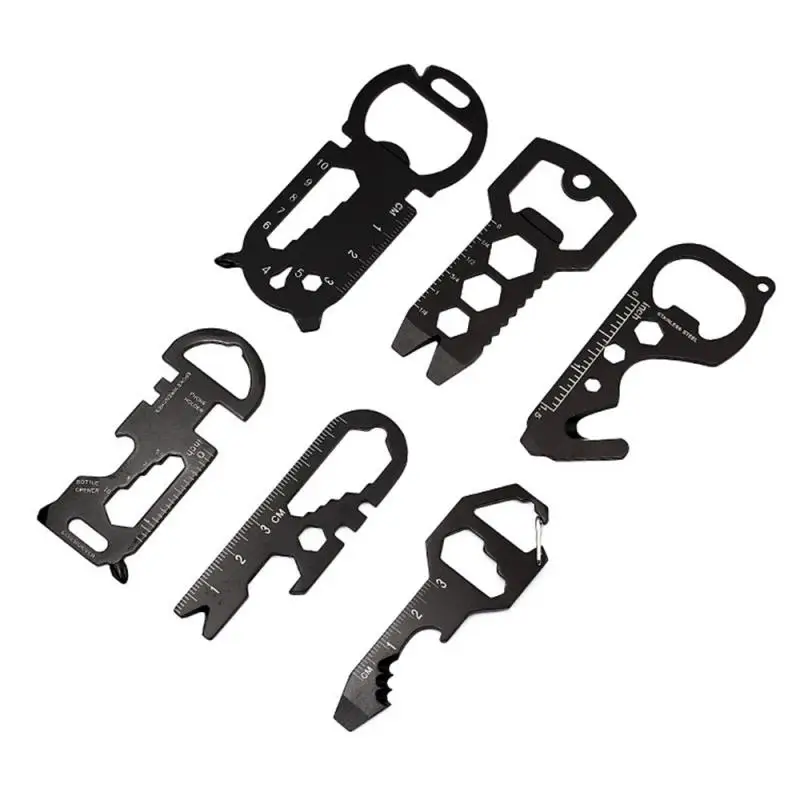 Tool Pendant Keyring A Variety Of Multi-functional Stainless Steel Key-shaped Pocket Tool Key Chain With Bottle Opener