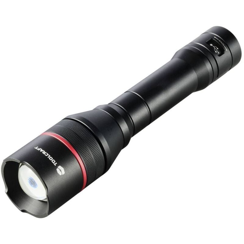 Dettagli tecnici Alimentazione a batteria ricaricabile Caratteristiche delle torce regolabile, Interfaccia USB, con modalità strobo Colore Nero/Rosso Dimensione, Ø 46 mm Dimensioni (Ø x A) 46 mm x 205 mm Dimensioni prodotto Altezza 205 mm Flusso luminoso (gamma) 1000 lm - Materiale Alluminio Peso 397 g Portata luminosa (alta) 133 m Tecnologia batteria o accumulatore Li-Ion Tensione di funzionamento 5 V Tipo prodotto Lampada portatile Potenza 60 W TENSIONE D'INGRESSO: CC 5 V 1A POTENZA DI USCITA USB: DC 5 V 1A Colore della luce: Bianco freddo Batteria: 1 batteria ricaricabile agli ioni di litio da 3,7 V 21700 4500 mAh Tempo di ricarica: Da 6 a 7 ore Tempo di scarica: 2 ore (alto), 4,5 ore (medio), 10 ore (basso) Torcia TOOLCRAFT, alimentata a batteria Torcia di alta qualità con molti extra La torcia a batteria TOOLCRAFT offre molto più che semplicemente luce: Caratteristiche tecniche intelligenti e lavorazione di qualità rendono questa lampada il compagno indispensabile in condizioni