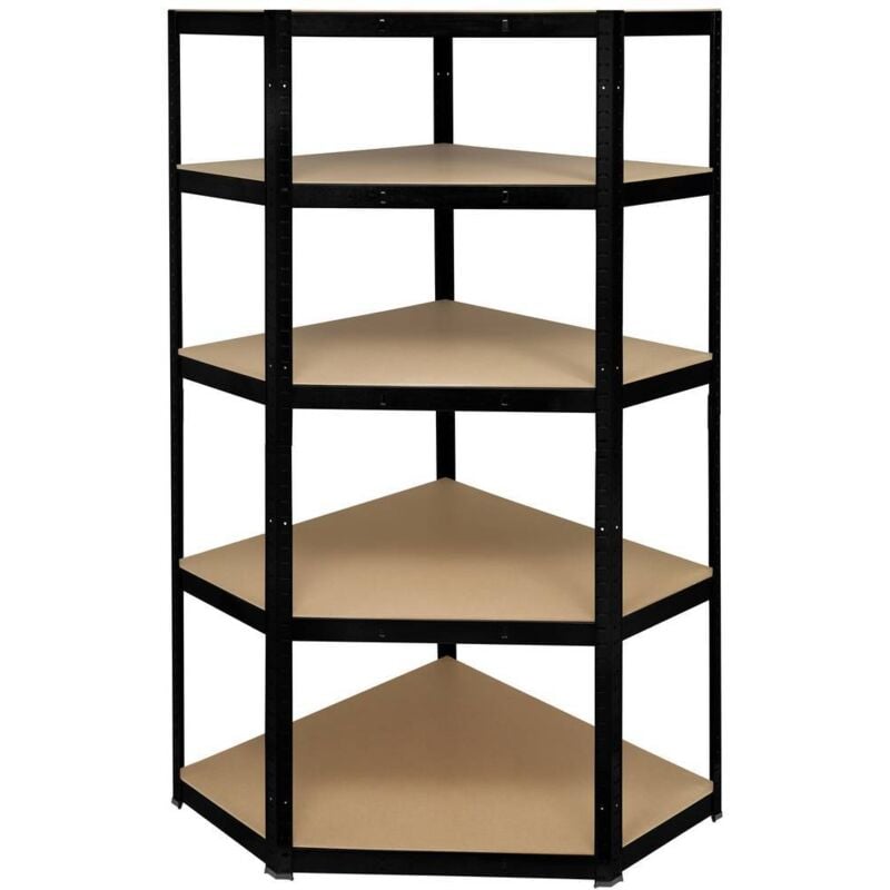 Dettagli tecnici Colore Nero (opaco) Dimensione del prodotto, larghezza 700 mm Dimensione, profondità 700 mm Dimensioni (L x A x P) 700 x 1800 x 700 mm Dimensioni prodotto Altezza 1800 mm Materiale Metallo (verniciato a polvere), Pannello MDFM Numero di piani 5 Peso 16 kg Proprietà del materiale galvanizzato zinco Tipo prodotto Modulo angolare per scaffale Scaffale ad angolo regolabile, 175 kg Conservazione ottimale grazie alla regolazione dell'angolo Il semplice sistema di innesto senza viti consente un facile montaggio. Perfetto per cantina o garage. Con traverse per aumentare la capacità di carico. I ripiani possono essere montati a diverse altezze e si adattano perfettamente agli angoli, consentendo un utilizzo ottimale della superficie utile. Lo scaffale d'angolo può essere combinato con il ripiano pesante (non incluso) per formare un sistema di ripiani d'angolo. Testo tradotto automaticamente Punti di forza e dettagli Capacità di carico di 175 kg per ogni ripiano bordi