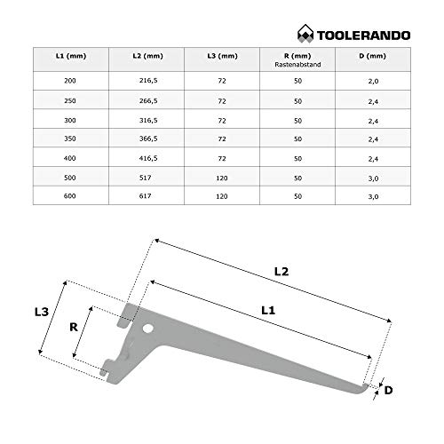 Toolerando Reggimensola per Cremagliera Semplice a Binario Singolo, 1 Fila, Supporto a U per Guide da Parete, Lunghezza 500 mm, Bianco
