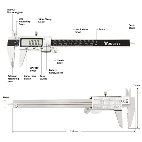 Tooleye Calibro Digitale, Preciva Caliper Metrico Da 150 Mm/6 Pollice Elettronico In Acciaio Inossidabile Calibro A Elettronico Corsoio Grande Schermo With Facile Lettura Lcd Vernier