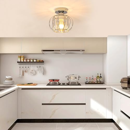Toolight Lampada da Soffitto Moderno, Plafoniera LED Soffitto in Cristallo E27, Creativa Lampadario Cristallo per Corridoio Camera da Letto Soggiorno, Cromo, 19cm (Lampadina non Inclusa)