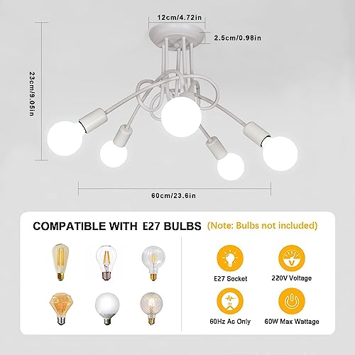 Plafoniere a 5-Luci: questa Lampada da soffitto vintage realizzata in ferro premium e verniciata con processo di verniciatura, che garantisce che sia antiruggine senza sbiadire. Il corpo della lampada bianca pura è semplice e alla moda, crea un'atmosfera confortevole.