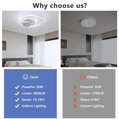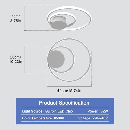 [Plafoniera LED Soffitto] Dimensioni: 40*40*7,5 cm. Potenza: 32W. temperatura di colore: 6500K. lumen: 3600LM, equivalente a una lampada a incandescenza da 360W. Si tratta di una lampada a emissione di luce esterna, quindi più luminosa.