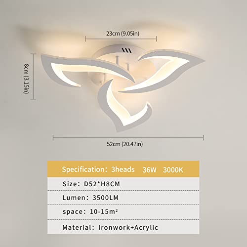 Toolight Plafoniera LED Soffitto 36W 4000LM, Lampada da Soffitto Moderna 52cm, Lampadario Camera da Letto Acrilica Creativo Forma di Fiore per Camera da Letto Cucina Soggiorno, Bianco Caldo 3000K